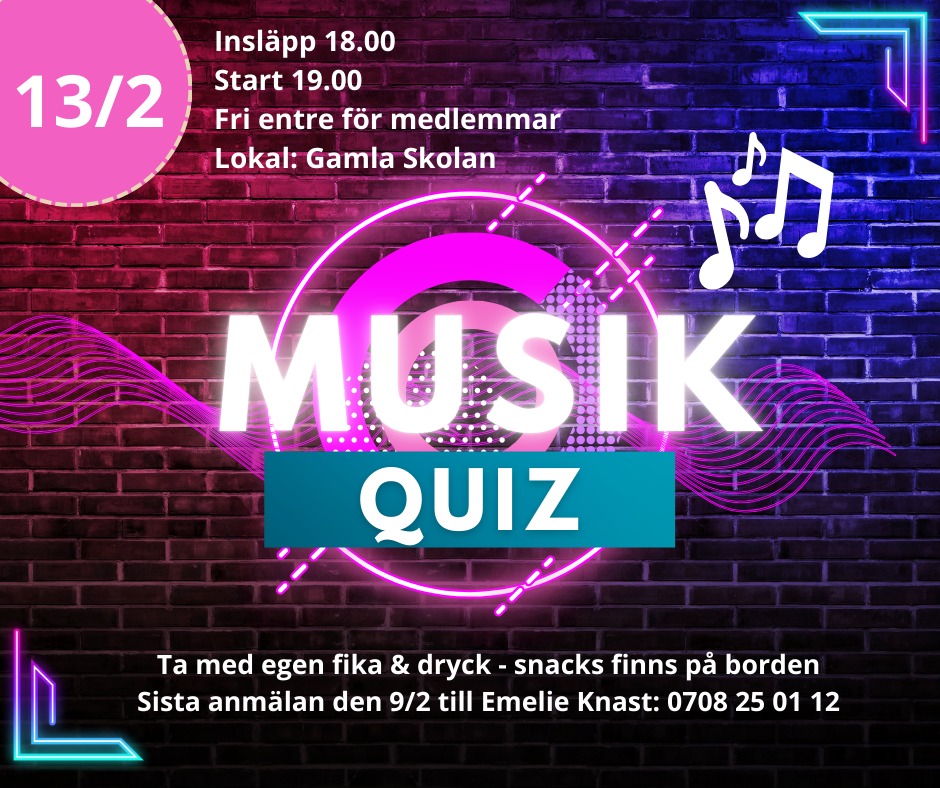 Fredagen den 13/2 arrangerar Byalaget tillsammans med Emelie Knast och Lina Fagerell ett musikquiz med finfina priser
